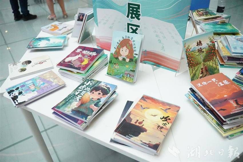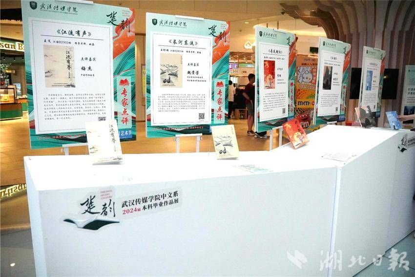 此次本届毕业作品展主题是“楚韵”,展出的作品均为该校中文系毕业生原创,包括网络文学、儿童文学、乡土文学、短视频文案、公众号推文等,兼具文字、图片、视频和音乐。书籍设计和毕业展台设计则由视觉传达专业学生完成,展示了该校课程与作品跨专业融合的成果。现场,有的市民看得津津有味,有的直接问“书卖吗?”。