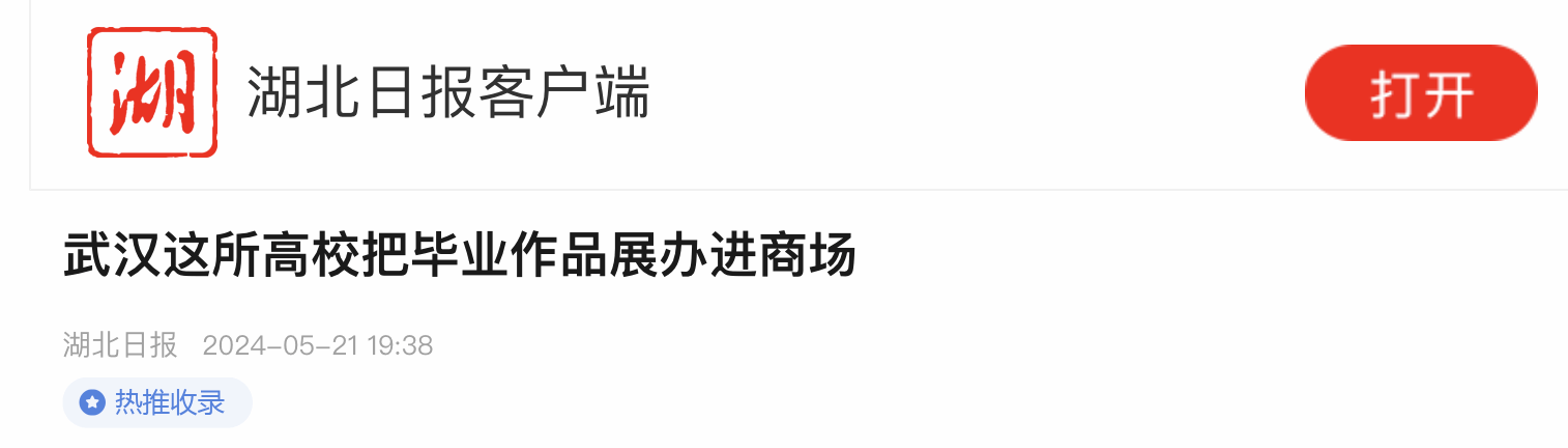 湖北日报讯(记者陈熹、通讯员乐毅)5月19日至20日,乐竞平台中文系2024届本科毕业作品展在武汉K11 Select商场展出,让学生的作品直面社会,接受公众检阅,吸引了众多市民围观、翻阅。这是该校连续第三年在校外举办作品展。
