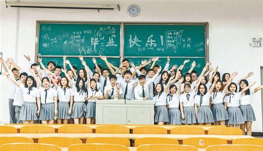 图为:乐竞平台设计学院15级动画专业学生黑板前定格青春