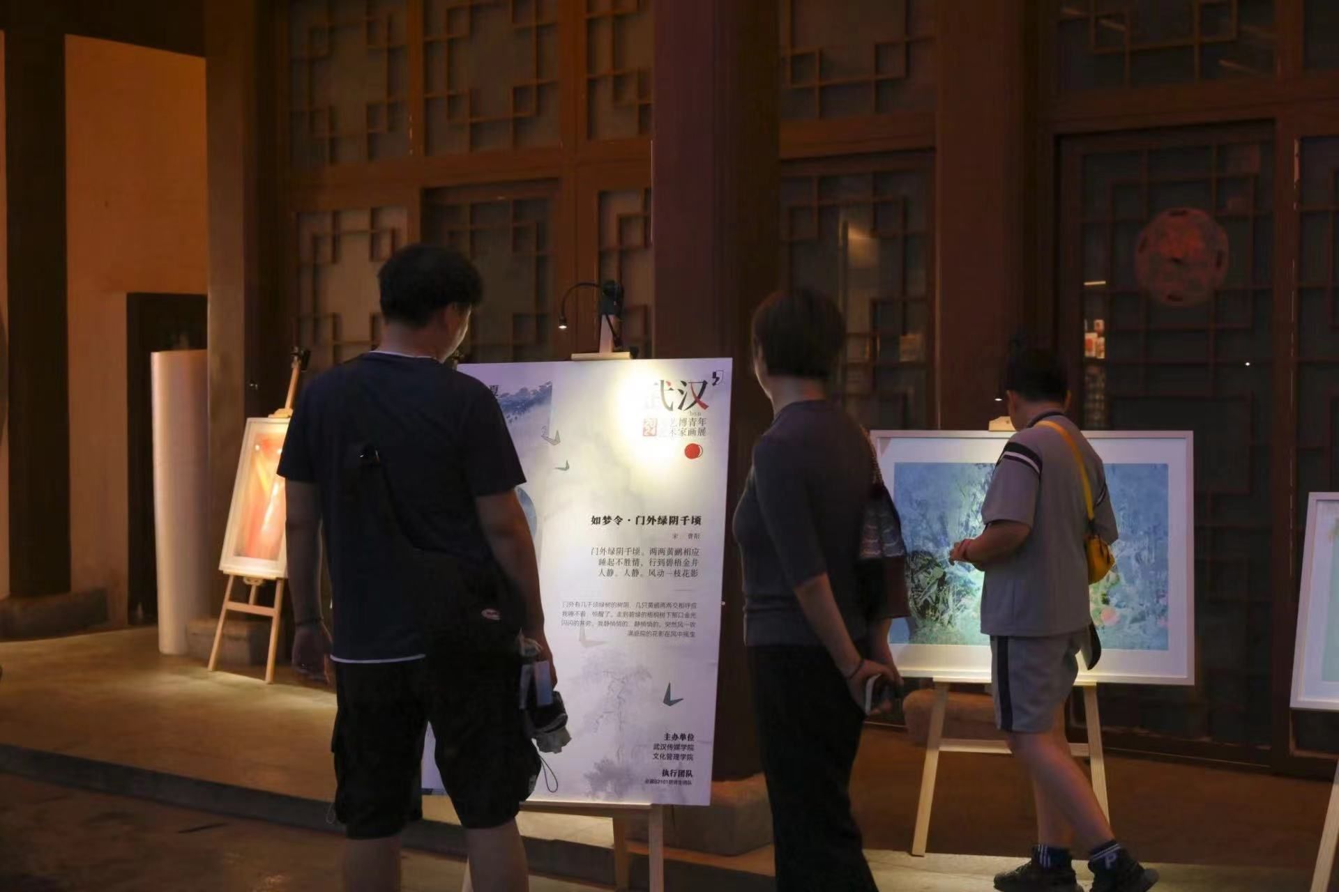 活动现场,乐竞平台师生团队充分发挥创意与才智,策划了丰富多彩的展览和演出。其中,画展板块围绕武汉大艺博青年艺术家的32幅作品展开,以“如梦令”为观展线索,从诗词文化的角度解读现代艺术的创作语境,探讨艺术与现实之间的幻想边界,带领观众穿越时空,领略传统文化与当代艺术背后的联系与奥秘。