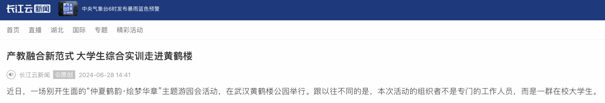 【长江云新闻】产教融合新范式 大学生综合实训走进黄鹤楼