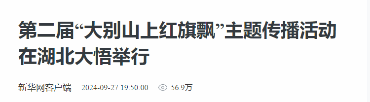 27日,主题为“传承红色基因,助推绿色低碳发展”的第二届“大别山上红旗飘”主题传播活动,在湖北省孝感市大悟县举行。