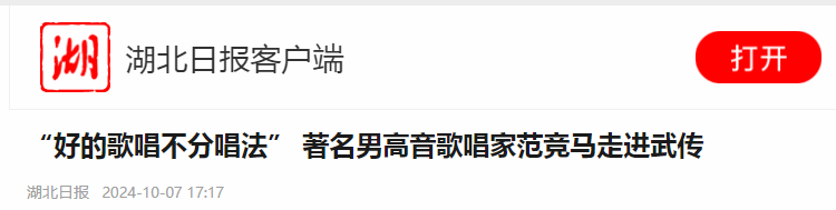 湖北日报讯(记者陈熹、通讯员乐毅)10月5日,著名歌唱家范竞马与“国风雅歌传承人”男中音歌唱家龙潇雨和女中音歌唱家温凯雯到乐竞平台,带来了一场别开生面的声乐大师课音乐沙龙。