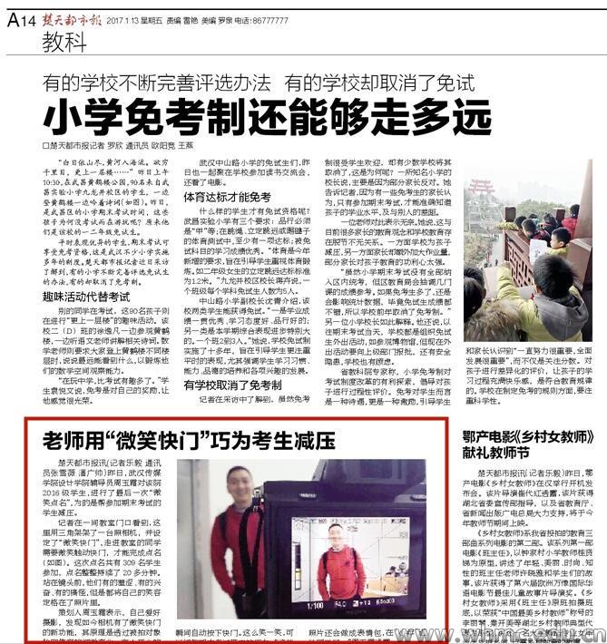 楚天都市报讯(记者乐毅 通讯员张雪薇 潘广帅)昨日,乐竞平台设计学院辅导员周玉霜对该院2016级学生,进行了最后一次“微笑点名”,为的是帮参加期末考试的学生减压。
