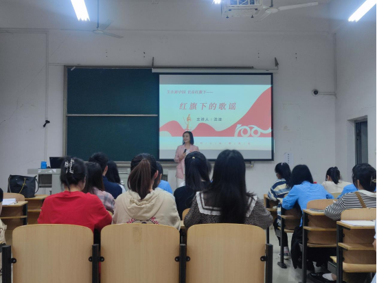 针对预备党员和党员,沈洁老师以“生在新中国,长在红旗下——红旗下的歌谣”为主题,向同学们展示了一首首振奋人心的红色经典歌谣,讲述了每一首歌曲所反映的时代背景。以歌谣为线索,带领同学们深入了解了抗日战争、解放战争等时期的主要矛盾和主要任务。让同学们对《团结就是力量》《中国人民解放军进行曲》《绣红旗》等优秀作品有了更深入的了解。
