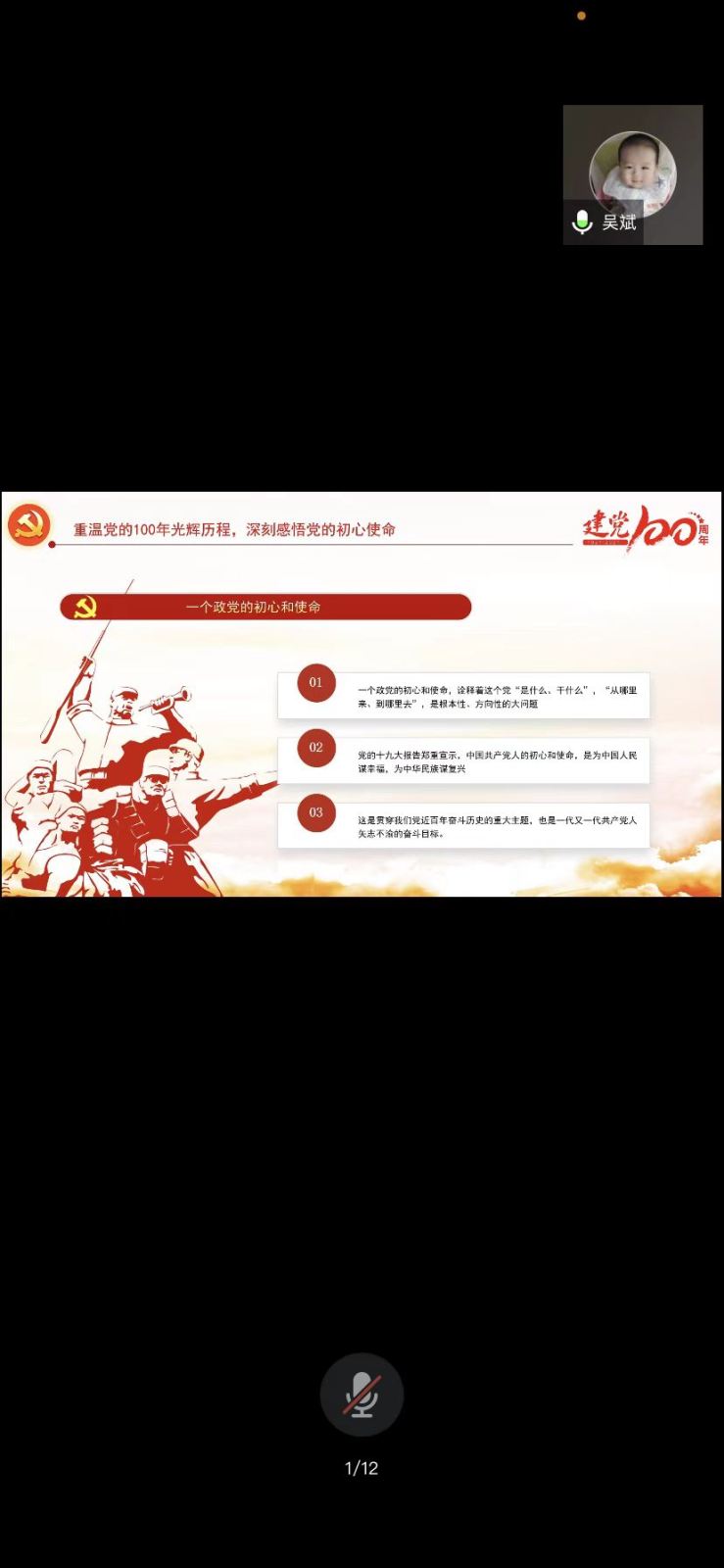 吴斌书记围绕三个方面讲述了本次党课的核心内容:一是重温党的100年光辉历程,深刻感悟党的初心使命;二是践行初心使命,必须担当作为;三是牢记党史国史,践行初心使命。书记讲到:一个政党的初心和使命,诠释着这个党“是什么、干什么”,“从哪里来、到哪里去”,是根本性、方向性的大问题。党的十九大报告郑重宣示,中国共产党人的初心和使命,是为中国人民谋幸福,为中华民族谋复兴。这是贯穿我们党近百年奋斗历史的重大主题,也是一代又一代共产党人矢志不渝的奋斗目标。中国共产党的历史,是一部“不忘初心,牢记使命”的不懈奋斗史;我们作为党员,要不忘初心牢记使命,始终把人民的利益放在首位,要努力为人民群众服务,认真做好每次为人民群众服务的活动,认真在食堂、校门口站好岗,充分发挥好党员的模范带头作用。中国共产党的历史,是一部百折不挠,前赴后继的理论探索史。中国共产党顺应这样的形势任务而诞生和成长。近100年来,党团结人民经历千难万险,付出了巨大的牺牲,实现了三次伟大飞跃。三次伟大飞跃昭示我们,中国特色社会主义道路来之不易,我们应该牢记这段历史。中国共产党的历史,是一部自我革命、勇立潮头的自身建设史。勇于自我革命,从严管党治党,是我们党最鲜明的品格,也是我们党最大的优势。因为我们党除了国家、民族、人民的利益,没有任何自己的特殊利益。不谋私利才能谋根本、谋大利,才能从党的性质和根本宗旨出发,从人民根本利益出发,检视自己。中国共产党的历史,是一部严明纪律、反对腐败的艰辛创业史。我们党从一个几十人的小党,现在成为领导14亿多中国人民,有9100多万党员的大党,靠什么呢?一靠理想,二靠纪律。始终有铁的纪律,是我们事业取得成功和胜利的保证。