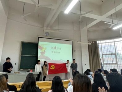 紧接着,党员服务站指导老师荣金玉上台发言,为我们介绍了学生党员服务站建设实施方案。她讲到,成立学生党员服务站以“全心全意为同学服务、践行一名党员一名旗帜”为宗旨,按照围绕学生、关照学生、服务学生的要求,整合学院资源、搭建育人平台、培育党建特色,构建全员育人、全方位育人、全过程育人的“大思政”工作格局。