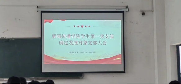 为深入学习贯彻习近平新时代中国特色社会主义思想,全面贯彻落实党的二十大精神。2023年10月8日,新闻传播学院学生第一党支部于3202教室举行确定发展对象支部大会。会议由张蓉同志主持,学生第一党支部全体成员和本期发展对象参会。