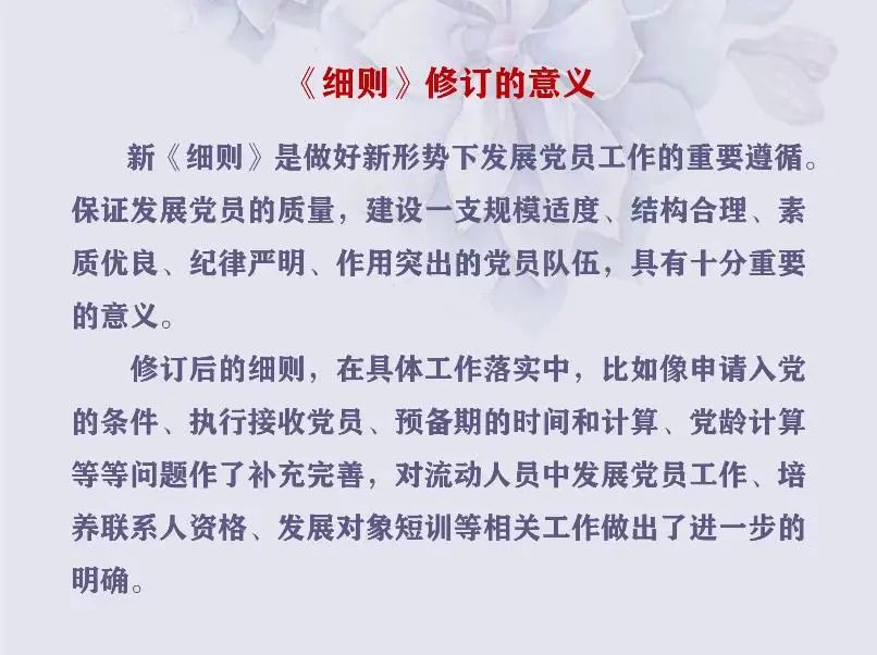 细则的修订对于保持队伍本身的革命性具有重大意义,刘少奇同志曾说过:“革命者必先自我革命,革命者永远年轻。”而细则,便是保持革命者年轻的一剂良药。