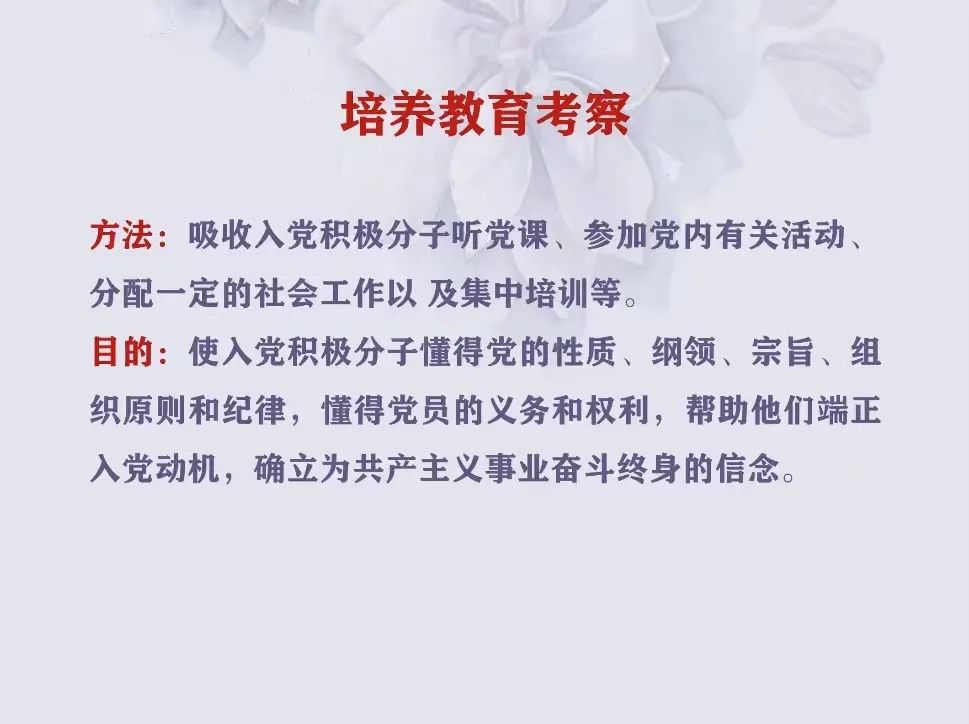 应祯老师表示,只有通过教育和考察,入党积极分子才能更好地理解中国共产党的道路与思想,更好地为人民服务。只有成熟一个,才能发展一个。
