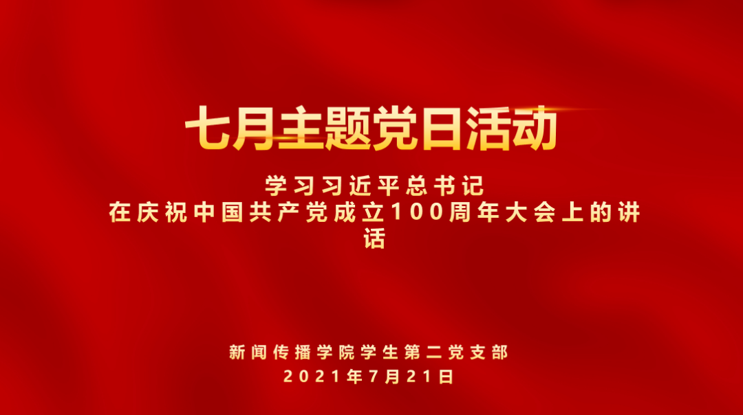 (图|文 叶信乐)7月21日,新闻传播学院学生第二党支部全体同志线上开展了“学习习近平总书记在庆祝中国共产党成立100周年大会上的讲话”七月主题党日活动。