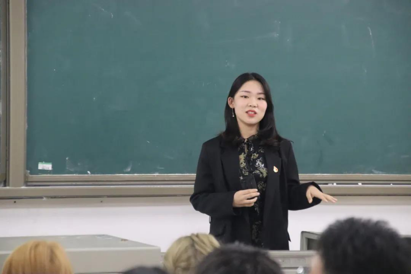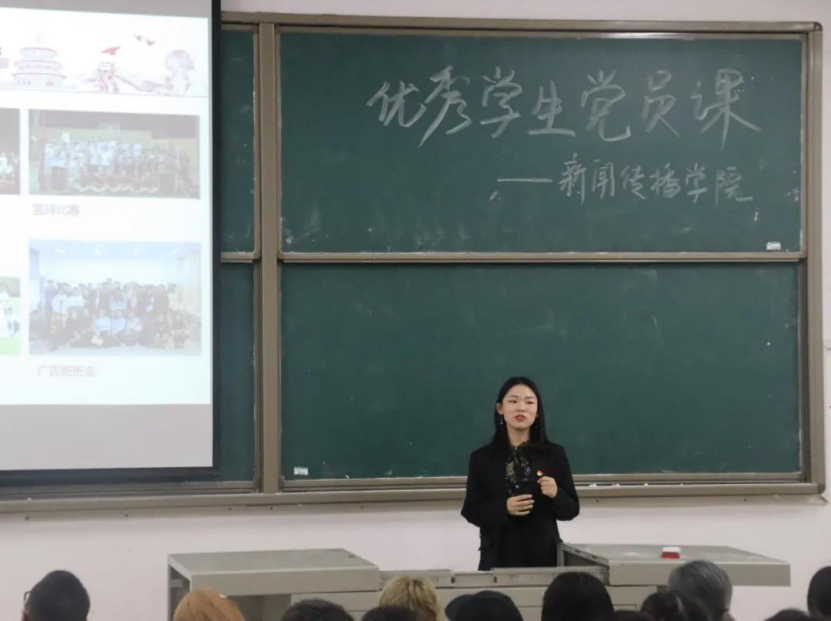 党课的主讲人梅楠学姐,曾担任过文体部副部长,团委学生副书记,2018级广告班学长班主任等,她以自身丰富优秀的实战经历,向我们分享她这一路上所看到的学到的。牛顿曾说“如果我看的比别人远些,那是因为我站在巨人的肩膀上”我们都不是巨人,但可以做别人的肩膀。这应该就是作为不论出于任何职位的你,所应体现奉献,服务精神的最好诠释吧。同时我们也应相信,这一路走来,我们所学到的协调能力,管理能力,所获得的内心充盈与满足感,会远远大于我们所受过的苦,流过的泪。会将你的能力与应用相结合,从而将自己提升到更高一层次。