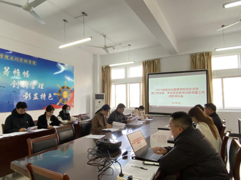 (通讯员 王静)为认真学习贯彻党的二十大精神,贯彻落实习近平总书记关于教育工作的重要讲话和指示批示精神,持续巩固主题教育成果,按照校党委《关于开展2023年度基层党组织书记抓党建工作述职评议考核工作方案》的要求,文化管理学院于2024年1月12日上午9:00在5309会议室组织了2023年度文化管理学院教工党支部、学生党支部书记抓党建工作述职评议会。