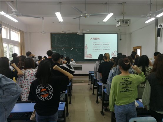 会议最后,所有参会人员一起起立宣读入党誓词——“我志愿加入中国共产党,拥护党的纲领,遵守党的章程,履行党员义务,执行党的决定,严守党的纪律,保守党的秘密,对党忠诚,积极工作,为共产主义奋斗终身,随时准备为党和人民牺牲一切,永不叛党。”