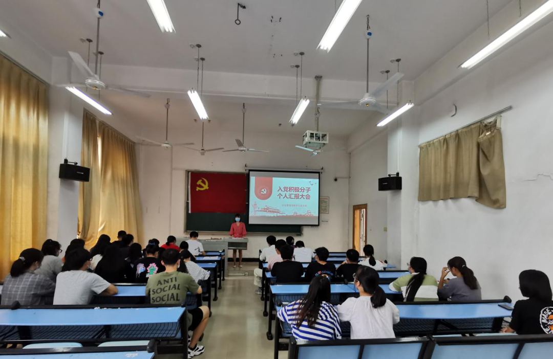 会议上,周茜茜、张芳胜、蔡静、柯静、韩佳妮等21名入党积极分子依次上台从个人简介、入党动机、学习和生活中的各项表现以及获奖荣誉等方面做展示汇报:大家通过阐述对党的认识以表明自己的入党动机:牢记初心和使命,全心全意为人民服务,为实现共产主义而奋斗,并表达组织上入党一生一次,思想上入党一生一世的决心;学习和生活中大家以优异的综测成绩在学习上为班级同学树立榜样,通过完成班级和团学组织工作以更好地为同学们服务,在校期间积极参加各项学术比赛以提升自己,寒暑假以及此次新冠肺炎疫情期间大家积极主动地报名参加各类志愿服务,拥有较好的奉献和服务意识。