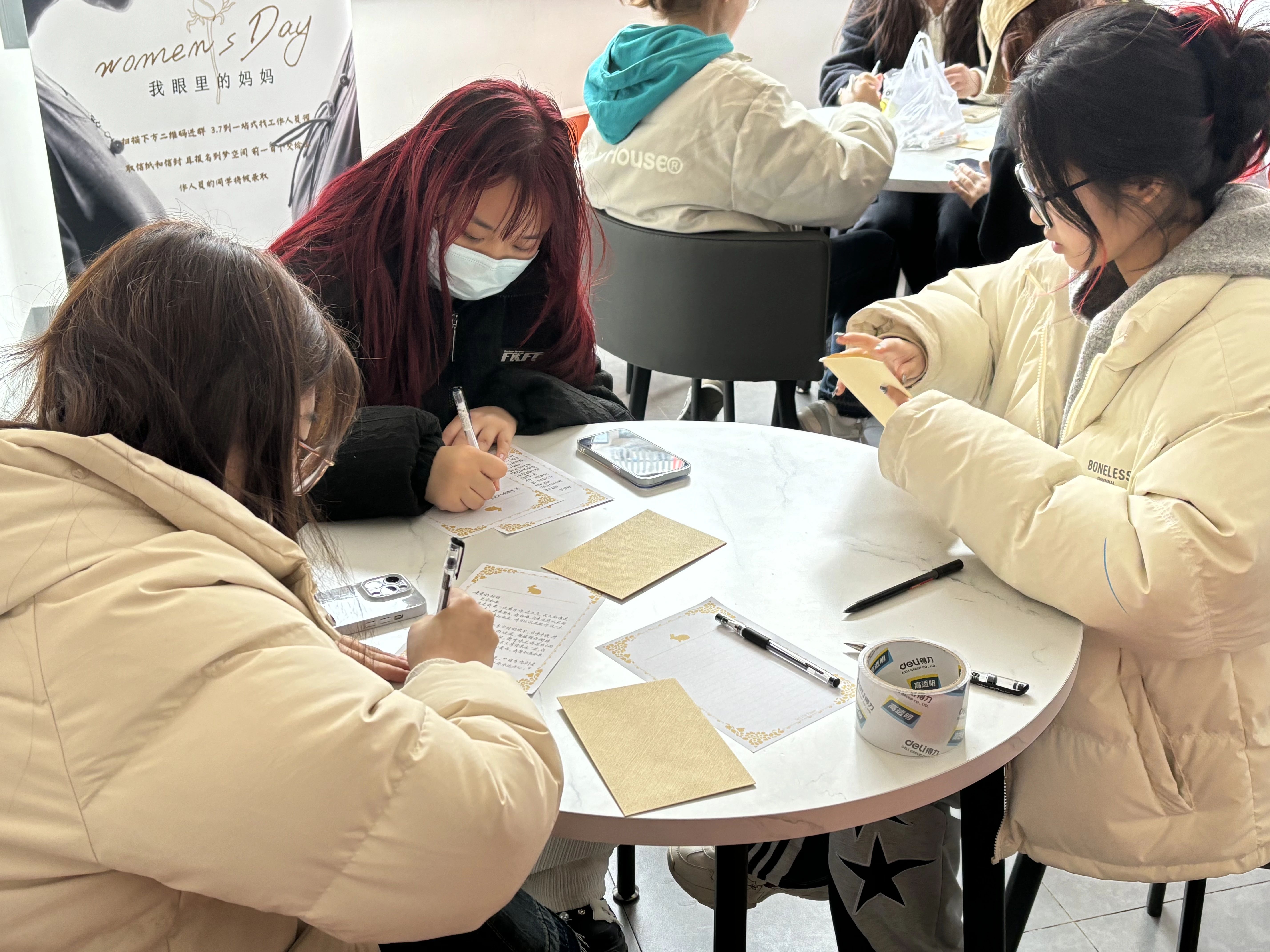 从写信的内容到写信封地址,从打印与妈妈的合照到把照片粘贴在一站式学生社区照片墙,看似一个个简单的环节,都融入了同学们对母亲浓厚的爱。