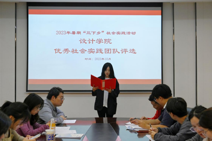 10月12日,设计学院2023年暑期‘三下乡’社会实践活动院级优秀团队答辩会在4311教室举行,各个教研室的老师作为评委老师出席会议。