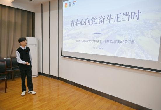 五支队伍按顺序进行了汇报展示,其中涵盖了多种实践类别。他们通过PPT展示,视频和音频分享等方式讲解展示了自己团队在“三下乡”社会实践活动的过程、收获和感悟。