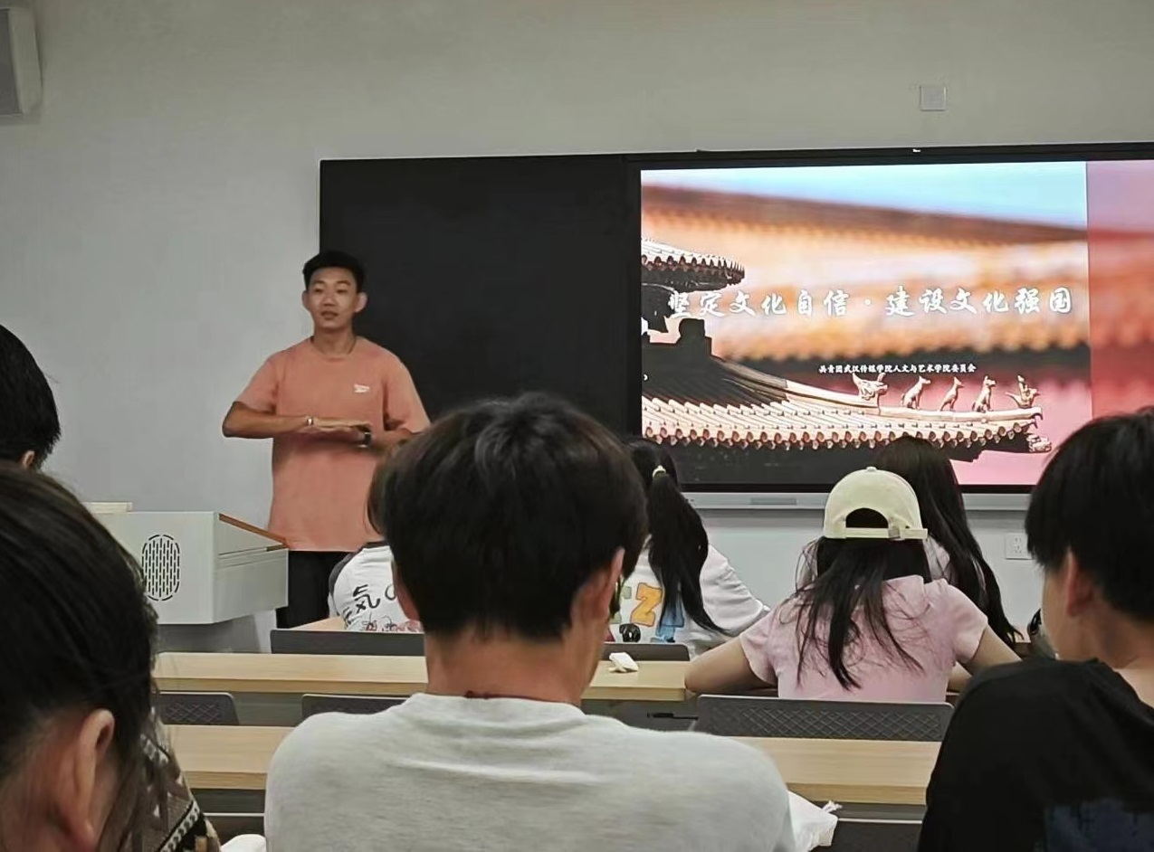 共青团乐竞平台委员会网讯(通讯员:人文与艺术学院宣传部) 为了引导当代青年学生肩负传播中华文化的重任,继承和发扬好中华传统文化,增强文化自信,人文与艺术学院团委书记葛清源老师今日前往大悟校区,为人文与艺术学院2023级新生进行了以“坚定文化自信,建设文化强国”为主题的团课学习。旨在教导学生坚定文化自信,弘扬传统文化,树立正确的人生观、价值观和世界观。