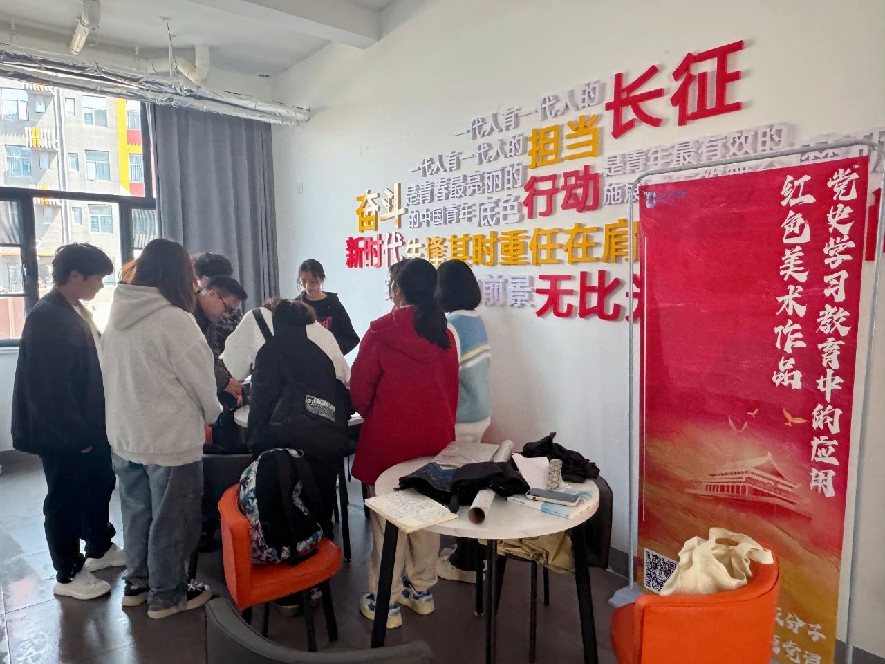 活动中,组织员董玲东带领同学们共同学习了“铸牢中华民族共同体意识”相关内容,优秀学生党员依次给2023级学生分享了自己的学习经历和思想感悟。分享环节后,在专业老师的带领下,同学们将绘画主题和党史相结合,创作内容涵盖了中共一大等重要建筑、历史事件和杰出人物。