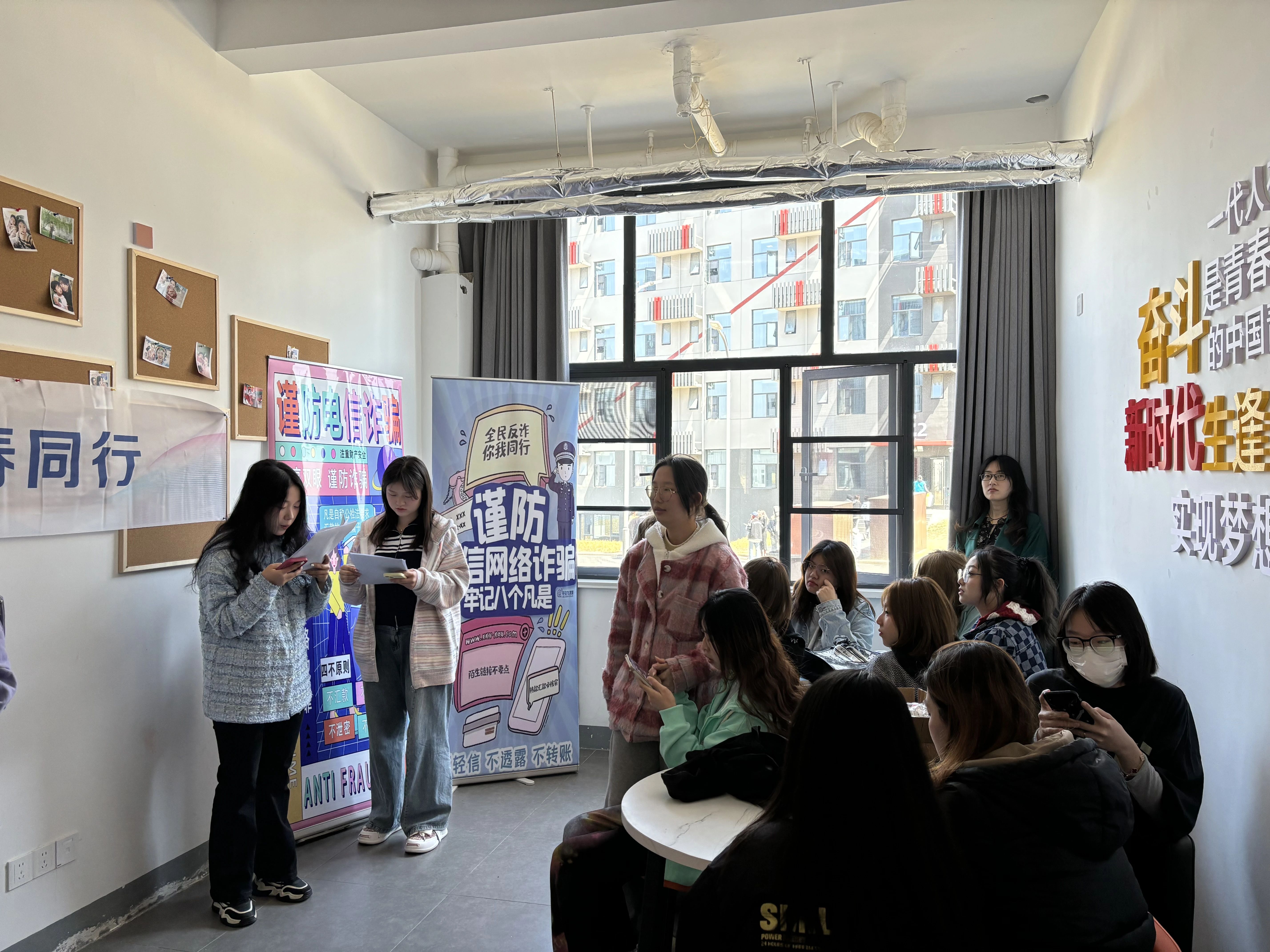 参与活动的同学们在一站式学生社区分享了自己在日常生活中遇到的诈骗案例并交流了几种常见诈骗的防范举措。胡洁同学分享了她好友参加“刷单返利”的经历,并谈道:“诈骗真的就在我们身边,我们要时刻警惕,还要提醒周围的同学们提高警惕,不贪小便宜。”在随后的防诈知识竞答环节中,同学们纷纷举手抢答,老师们为答题的同学送上了精美的小礼品,现场反响热烈。