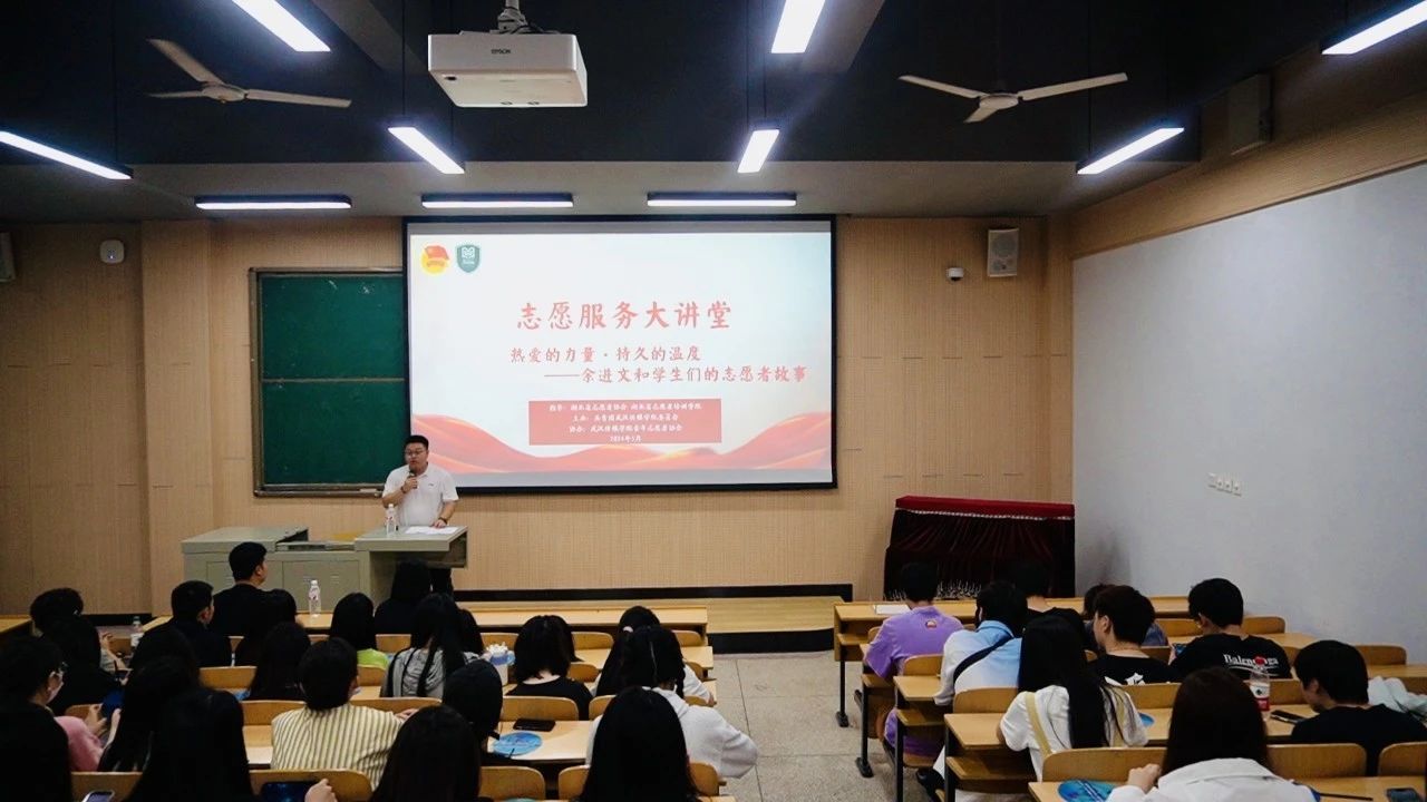 (通讯员:谢茗轩)为深入学习贯彻习近平新时代中国特色社会主义思想和习近平总书记关于志愿服务的重要指示精神,引导全校青年学生以昂扬向上的精神面貌和奉献实干的担当作为,奋进新征程、建功新时代。我校于5月30日下午在武汉校区7109智慧教室举行第二期乐竞平台志愿服务大讲堂。校团委特邀请到武汉青联委员、武汉市青年志愿者协会理事、第十三届中国青年志愿者优秀个人、荆楚楷模、湖北省“向上向善”好青年、武汉道德模范、武汉工程科技学院余进文老师为大家上志愿服务这一堂“大思政课”。校团委副书记蒋璐老师及师生代表出席,讲座由校团委委员华震东老师主持。
