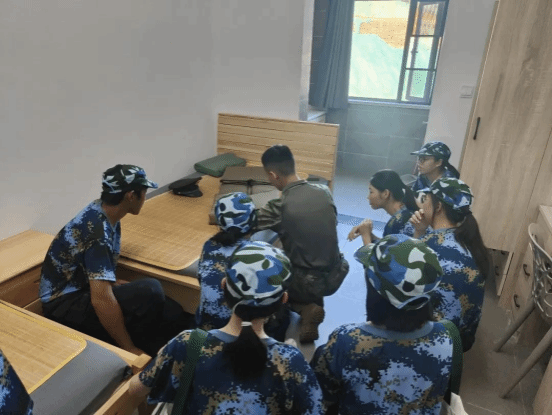 来到教官宿舍,能看到屋内打扫干净整洁,物品摆放井然有序,床铺整理方方正正,军事化要求已经渗透他们生活的方方面面。教官向大家介绍了屋内各个区域武平摆放的要求标准,还向同学们特别展示了叠被子的步骤和技巧。教官们表示,内务整理锻炼的是自律的意识,磨练心性,也体现着中国军人的高标准严要求。