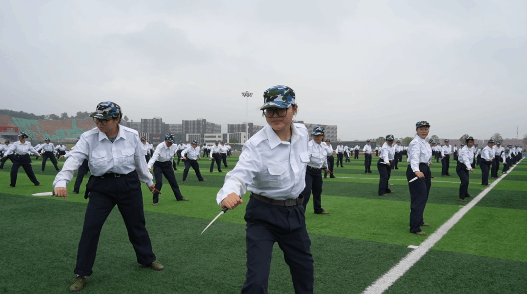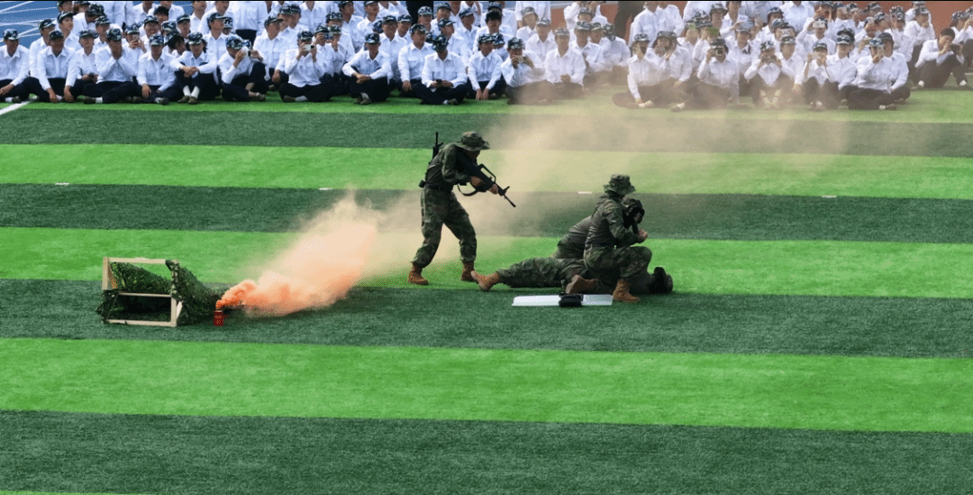 在匕首操、军体拳、战术演练、现场“硝烟”弥漫,同学们志厉青云,声如雷霆,军姿威武,气势雄壮,将武传学子踔厉奋发、昂扬向上的精神风貌展现得淋漓尽致。