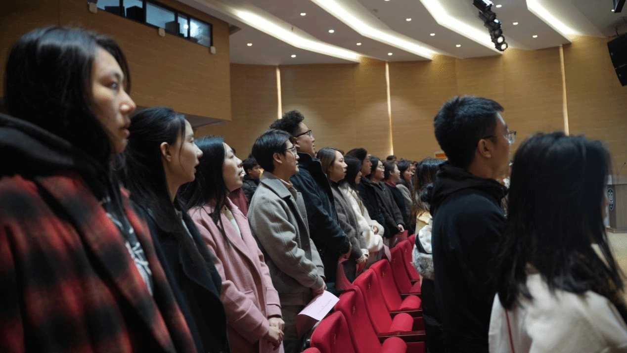 活动伊始,全体起立,奏唱中华人民共和国国歌。