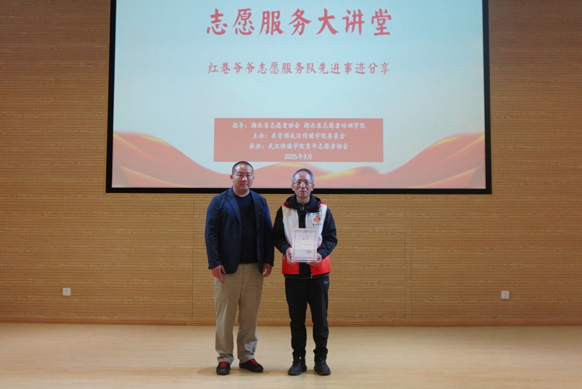 活动伊始,我校校团委特别邀请了荣获多项荣誉的“红巷爷爷”团队代表喻铭建同志为同学们授课。喻爷爷深情分享了“红巷爷爷”志愿服务队从初创的15人“老书记沙龙”到如今成为全国先进集体的光辉历程,以及他们在社区治理、红色文化传播等方面的卓越贡献。他的分享激发了同学们对志愿服务的热情,让大家深刻理解了志愿服务精神的内涵和价值。