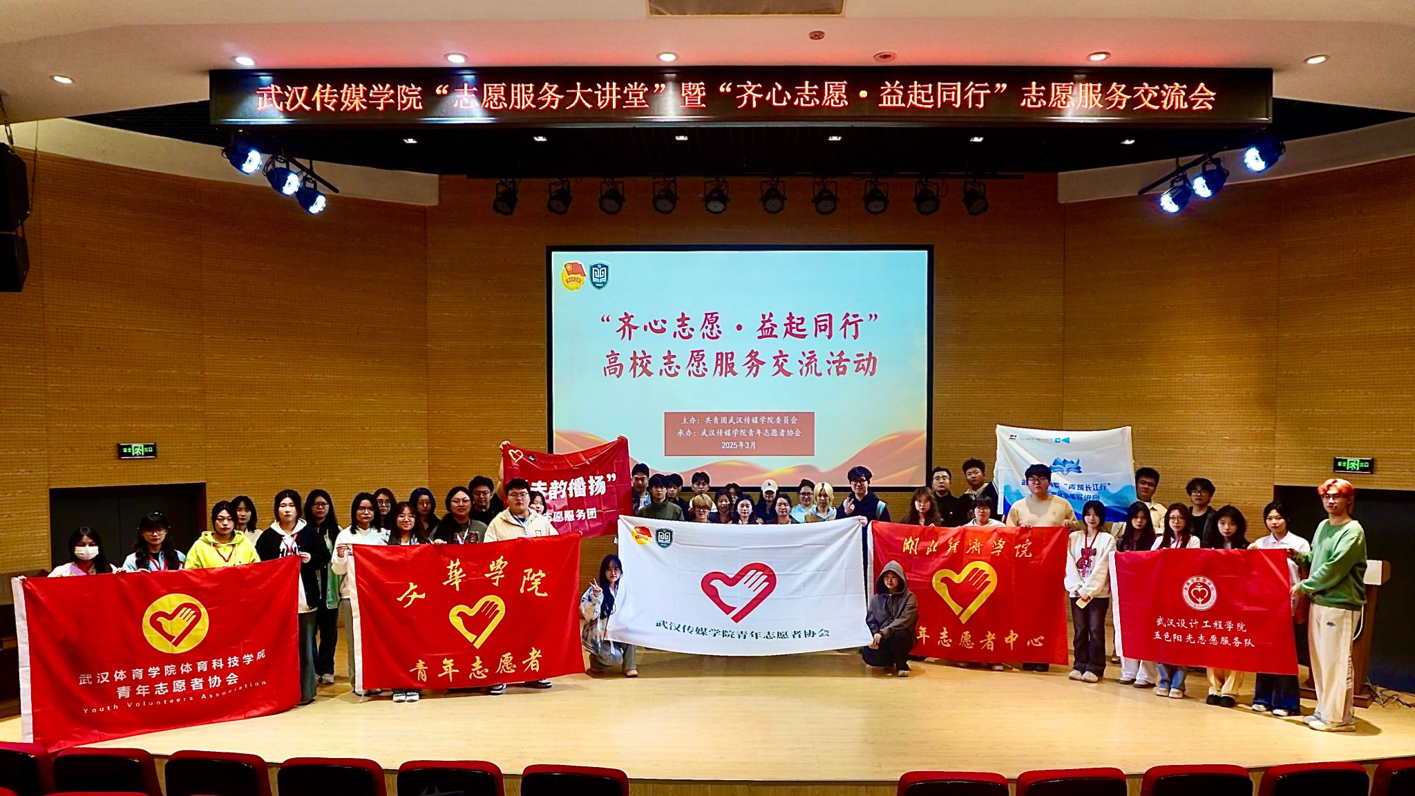 (通讯员 华震东 刘婷 张铭宇)3月27日,我校在武汉校区圆形报告厅成功举办了“志愿服务大讲堂”暨“齐心志愿·益起同行”高校志愿服务交流会。此次活动由湖北省志愿者协会和湖北省志愿者培训学院指导,共青团乐竞平台委员会主办,乐竞平台青年志愿者协会承办,播音主持艺术学院青年志愿者协会、电影与电视学院青年志愿者协会协办。校团委书记瞿宗巍、校团委委员华震东出席了活动,同时,来自湖北经济学院、文华学院、武汉设计工程学院、武汉体育学院体育科技学院的青年志愿者协会代表以及我校各学院的师生代表也参加了此次盛会。