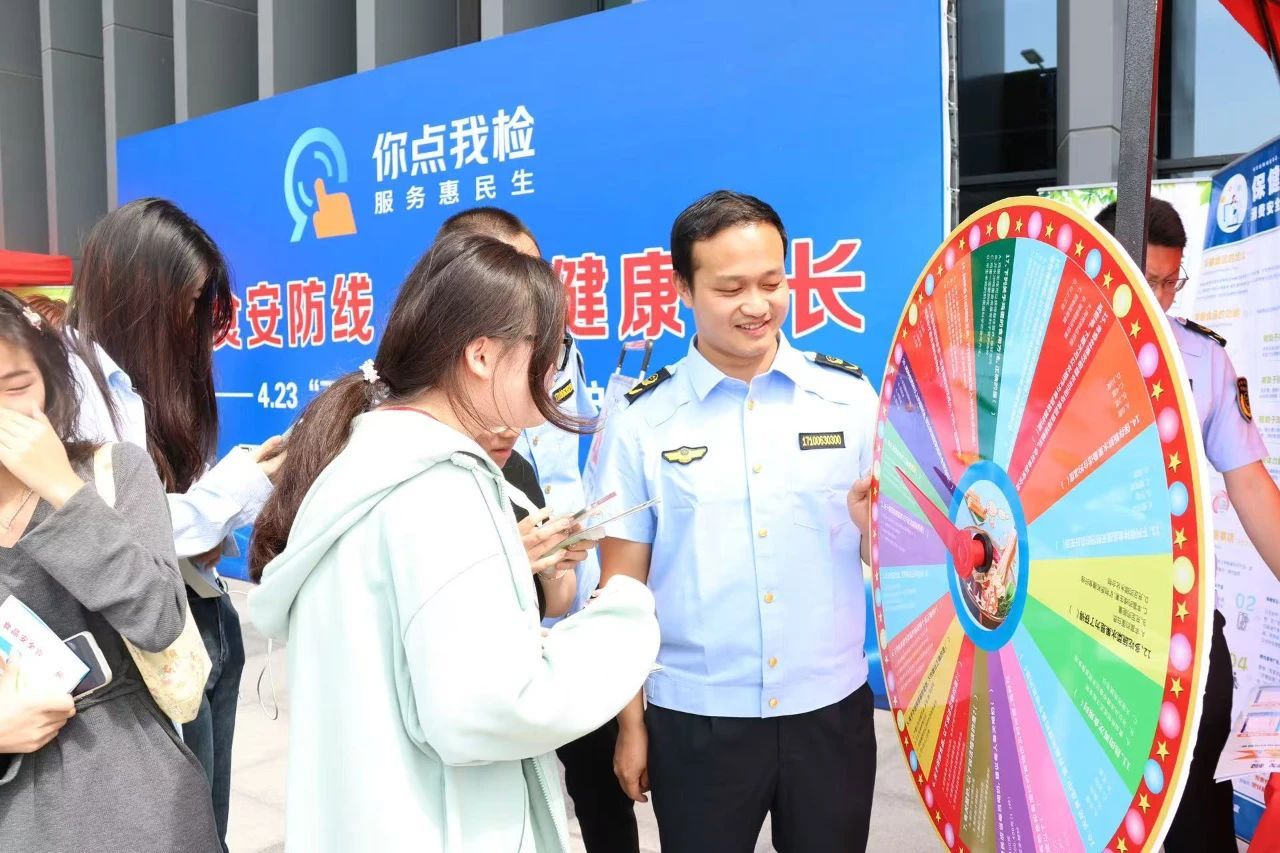 活动现场设置了多个互动区域,包括问卷填写区、投诉咨询区、科普宣传区和学生服务区。各区域通过宣传推广“你点我检 服务惠民生”民意征集系统、科普讲解食品安全知识、开展便民服务活动以及食品安全有奖知识问答等形式,吸引了师生广泛参与。师生们不仅深入了解了食品安全相关知识,还通过问卷调查表达了对食品安全工作的意见和建议,增强了活动的互动性和参与感。