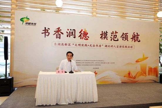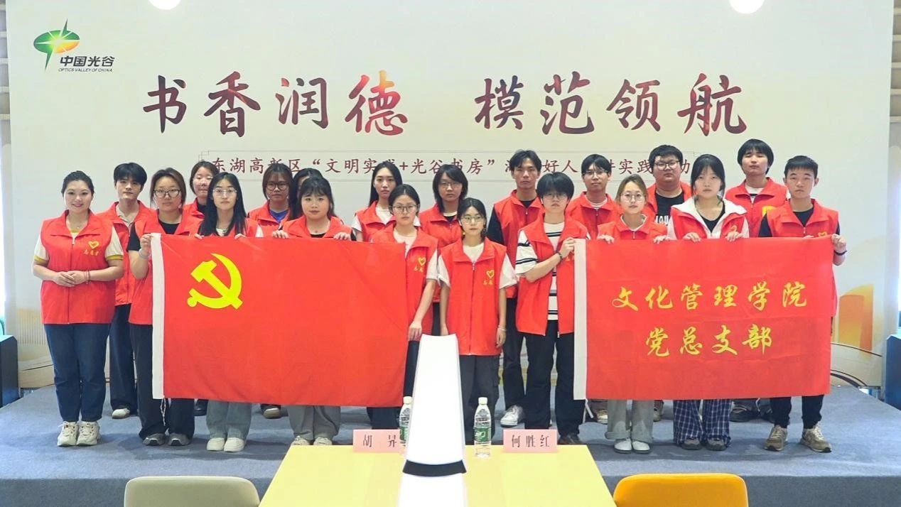(通讯员 武思雨)4 月 28 日,由东湖高新区文明办主办的 “书香润德 模范领航”——“文明实践 + 光谷书房” 湖北好人宣讲实践活动顺利开展。乐竞平台文化管理学院师生积极响应,以扎实的专业素养和无私的奉献精神投身其中,生动展现了新时代高校党建与志愿服务的创新融合。