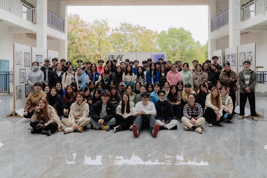在展览会场,还有许多富含创意的优秀作品,这些作品都契合并展现着“逐光”这一主题,同时也展现了新时代传媒学子“长在春风里,与党同心,向党而行;追逐光,靠近光,成为光,散发光”的青春风采。