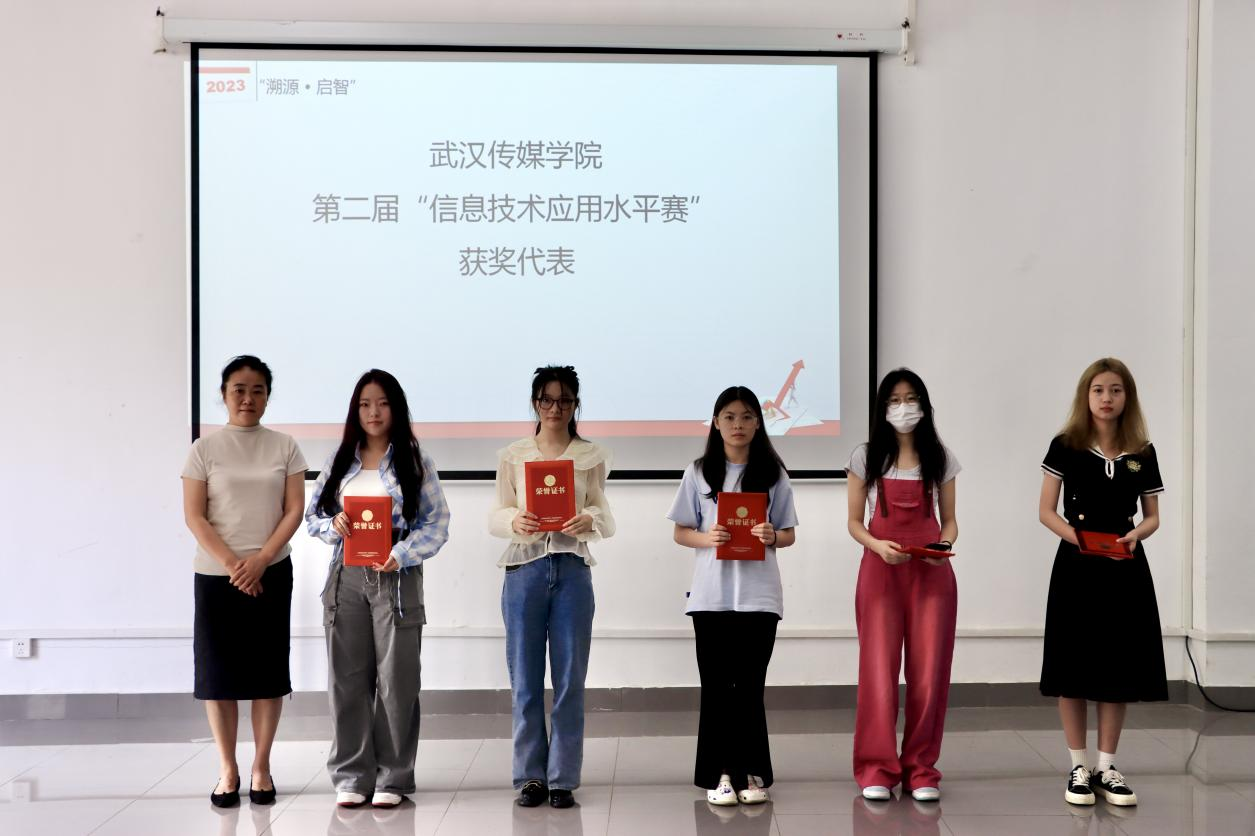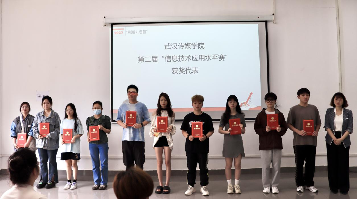 传媒技术学院教学副院长胡明星为荣获二等奖的学生代表颁奖