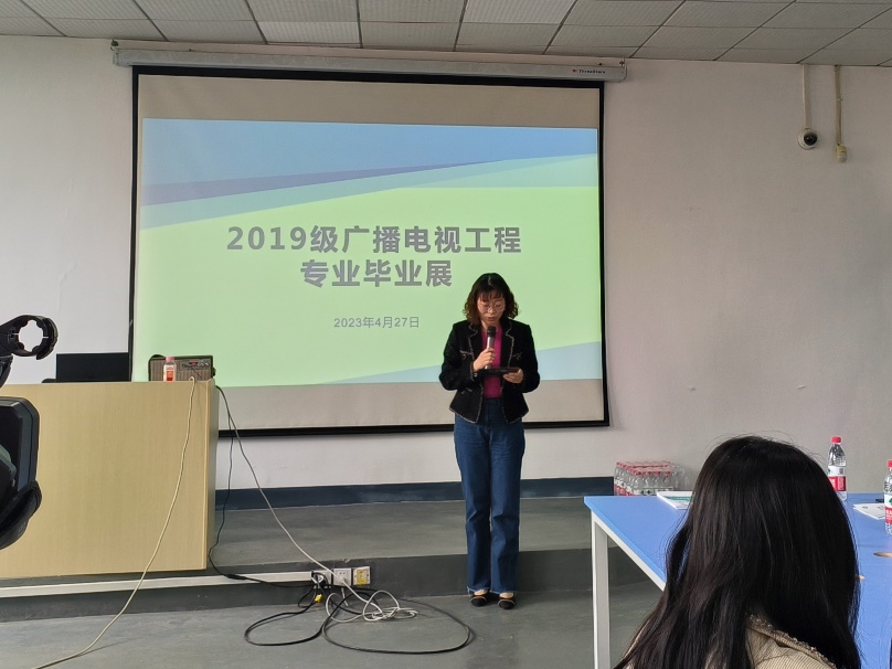 2023年4月27日星期四早十点,19级广播电视工程专业毕业设计展在8401教室精彩开幕,到场参观毕业展的嘉宾有传媒技术学院党总支部书记罗宝军书记、传媒技术学院副院长胡明星院长、湖北电视台高级工程师陈诚老师、媒体工程教研室主任杨瑞老师及广工的金鑫老师和崔春阳老师。