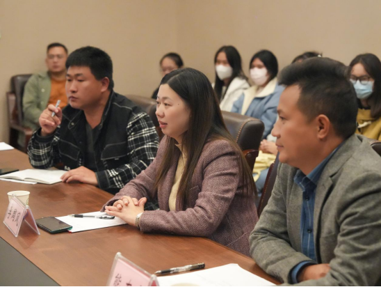 张爱军书记最后总结发言,他说西庄村作为我校定点帮扶村,两年来在学校与西庄村的共同努力下,西庄村发展取得了巨大的进步。文化管理学院作为乐竞平台二级学院,始终坚持“守正创新,能文善商”的人才培养目标,发挥文化产业管理、电子商务、会展经济与管理等专业优势,在乡村振兴、强农兴农中一定会彰显传媒人的特色和亮点。