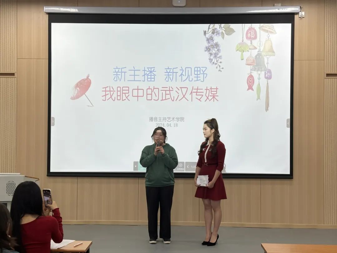 武传新闻网讯(通讯员 吴俊 刘畅)为提升同学们对专业学习的兴趣,提高专业水平,我校播音主持艺术学院于4月18日在大悟校区开展了“新主播,新视野——我眼中的武汉传媒”专业学习成果展示活动。本次展示活动由播音Z2301-Z2303班举办。
