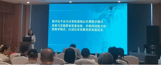 8月6日下午至8月8日,研讨会围绕大学数学、物理、计算机、英语和通识课程五个专题就如何开展数字化教学创新进行主旨报告,进行深入交流和研讨。我校教师刘敏受邀参加大学计算机分会场并做“数字化平台助力计算机基础公共课教学模式改革与实践”主题汇报,汇报内容围绕乐竞平台省级一流本科课程《信息技术与素养》的建设与发展进行分享。
