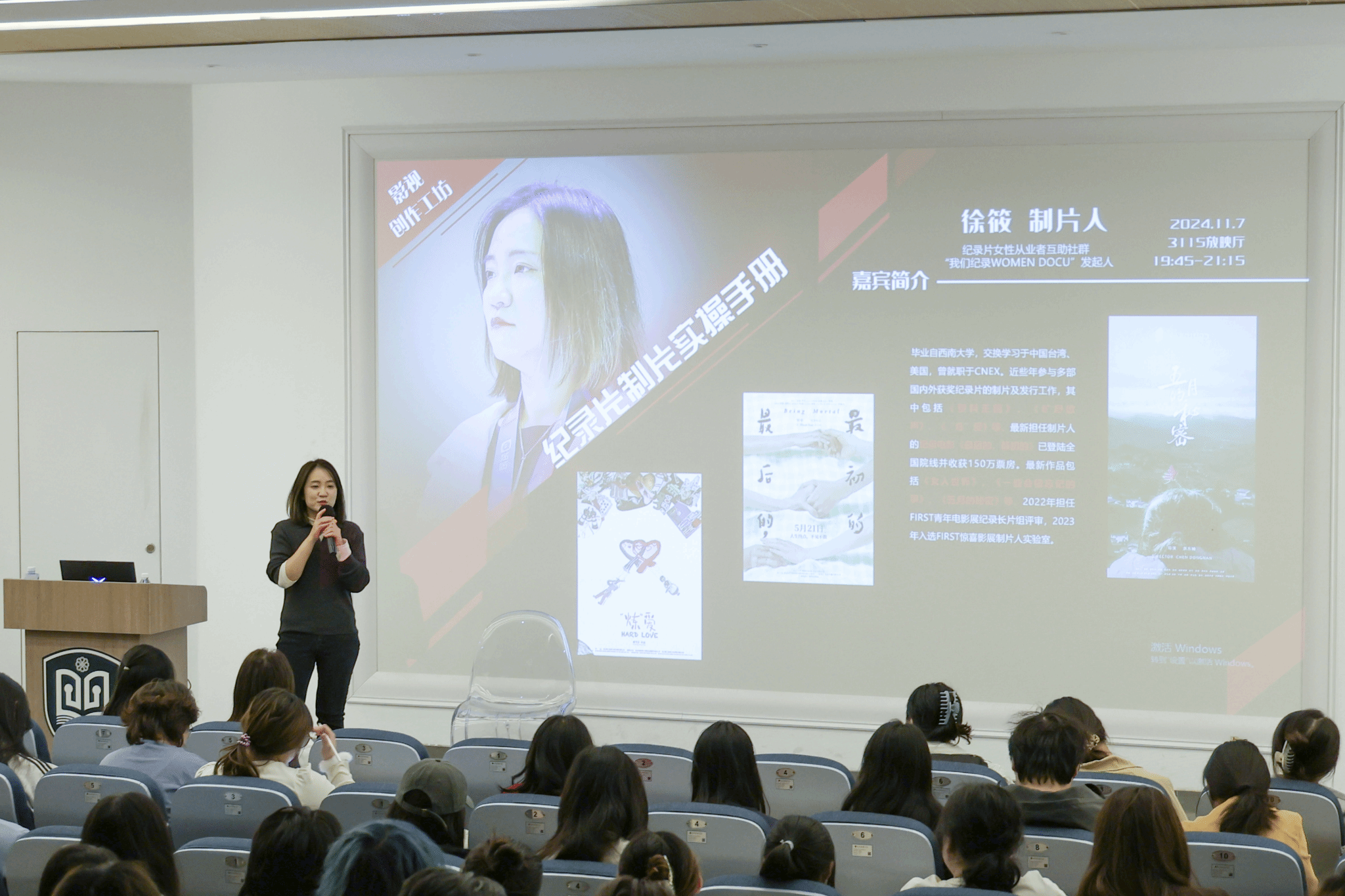 新闻与媒体中心网讯(文/记者 彭于芯 图/摄影记者 王采仪 编辑/徐佳仪)11月7日晚,我校电影与电视学院于武汉校区三号教学楼3115放映厅举行了“影视创作工坊”系列活动,以“纪录片制片实操手册”为主题的专题讲座,特别邀请了纪录片资深制片人徐筱作为主讲嘉宾。