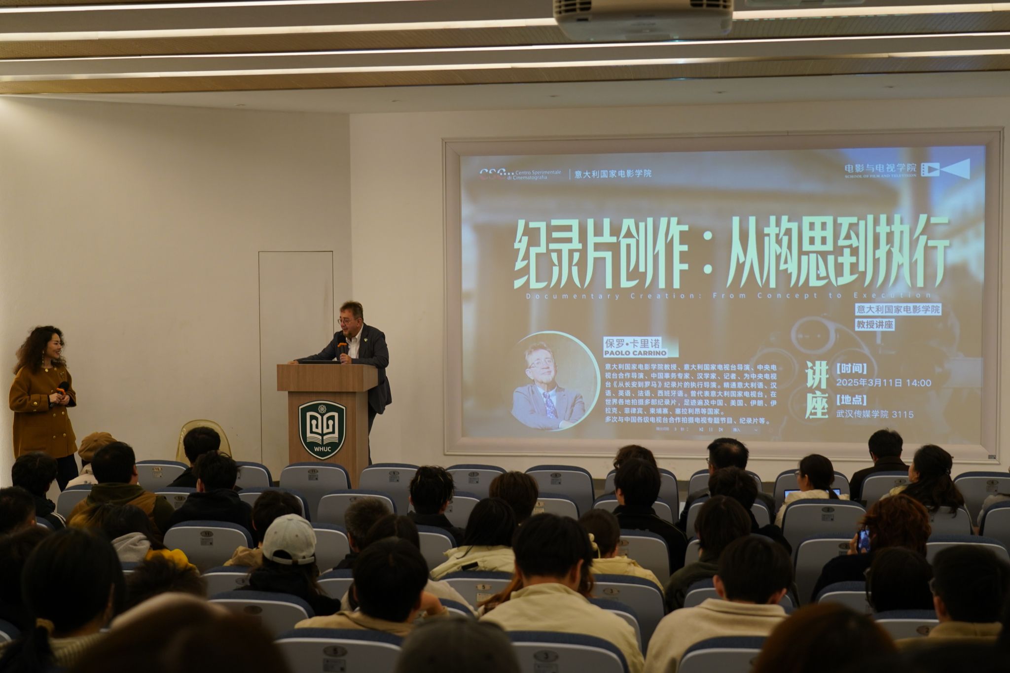 2025年3月11日下午,意大利国家电影学院代表团访问乐竞平台,其核心成员——享誉国际的导演、汉学家保罗·卡里诺(Paolo Carrino)教授在武汉校区为电影与电视学院的师生们带来了一场题为《纪录片创作:从构思到执行》的精彩讲座。这场中意电影文化的深度对话,不仅点燃了师生对纪录片创作的热情,更揭开了意大利电影教育“奥斯卡摇篮”的神秘面纱。