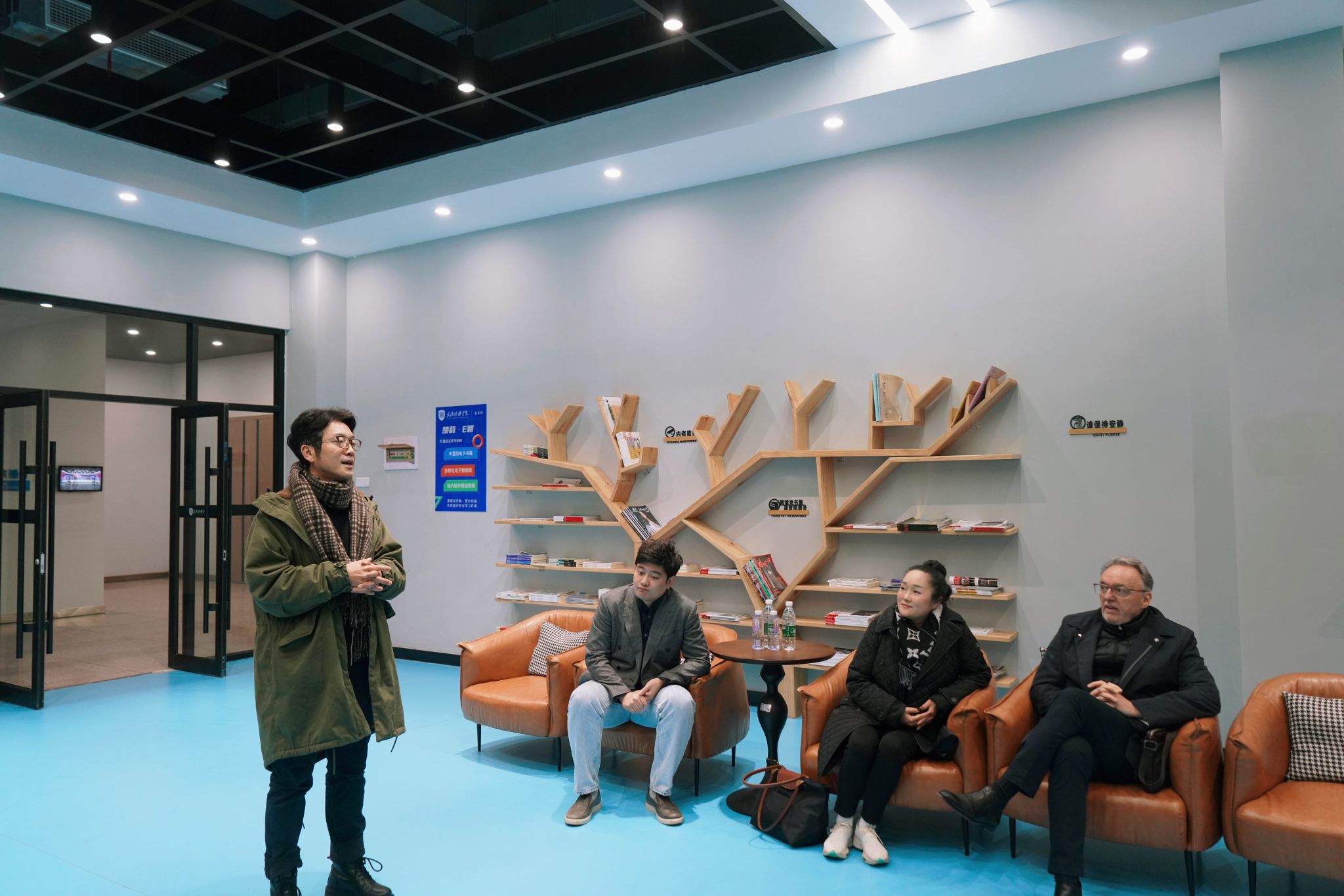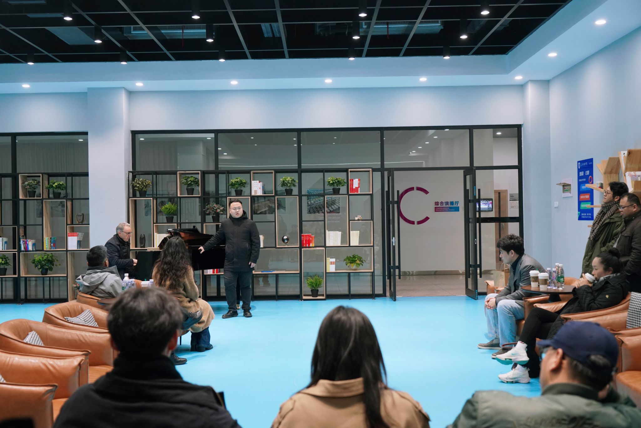 著名歌唱家范竞马和他的学生,男中音歌唱家龙潇雨和女高音歌唱家张雅坤提前来到现场。龙潇雨在钢琴前倾情演绎经典声乐作品,一时间,浑厚深沉的嗓音在阅览室内久久回荡。