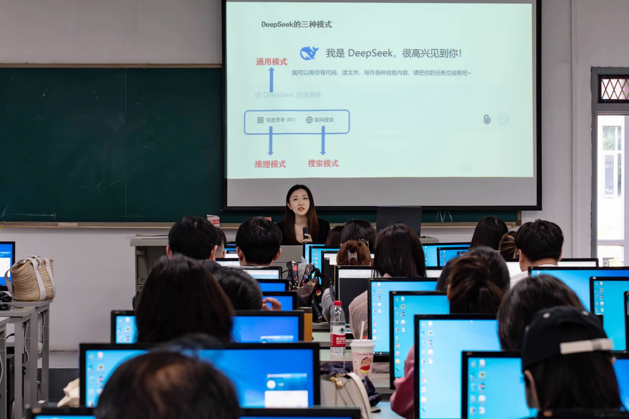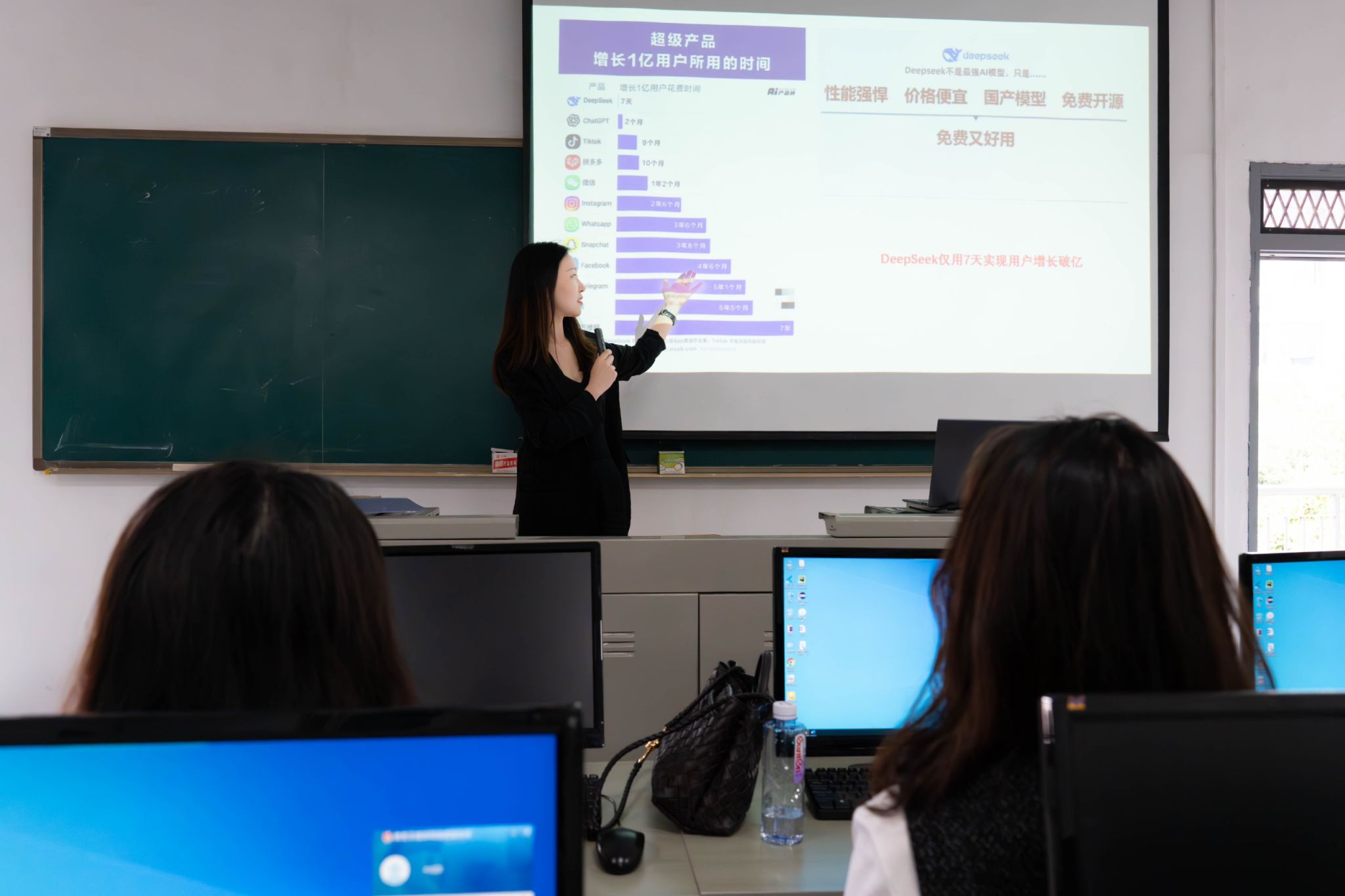 (通讯员 陈雪林)5 月 8 日,我校设计学院成功举办 “AI 赋能智慧课堂” 教师培训会。骨干教师胡颖以《人工智能赋能智慧课程建设与教学创新实践》为主题,深度剖析国产大模型 DeepSeek 与设计教学的融合路径,带领全院教师探索 AI 技术如何为设计课程创新注入 “智慧动能”,推动教师从数字化工具的应用者向智能化教育的共创者转变。