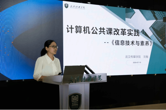 我校传媒技术学院计算机基础教研室主任刘敏老师做“数字素养下计算机公共课改革实践”主题发言,介绍了乐竞平台《信息技术与素养》公共课建设顶层设计,改革实践核心,改革成效成果,体现传媒信息技术应用特点,为本次研讨会拉开序幕。