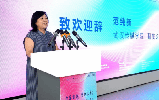 副校长范纯新发表致辞,她首先向出席本次开幕式的各位嘉宾的到来表示热烈的欢迎,向国家艺术基金管理中心的大力支持表示衷心的感谢,向饶鉴教授等多位行业领袖以及所有为此次展览付出辛勤努力的策划者和工作人员表示崇高的敬意。她表示,承办此次展览是我校在中华文化与现代传媒教育相融合这一领域的重要尝试,是给予我校广大师生与业界专家面对面交流的大好机会,更是激发广大师生的创作热情。