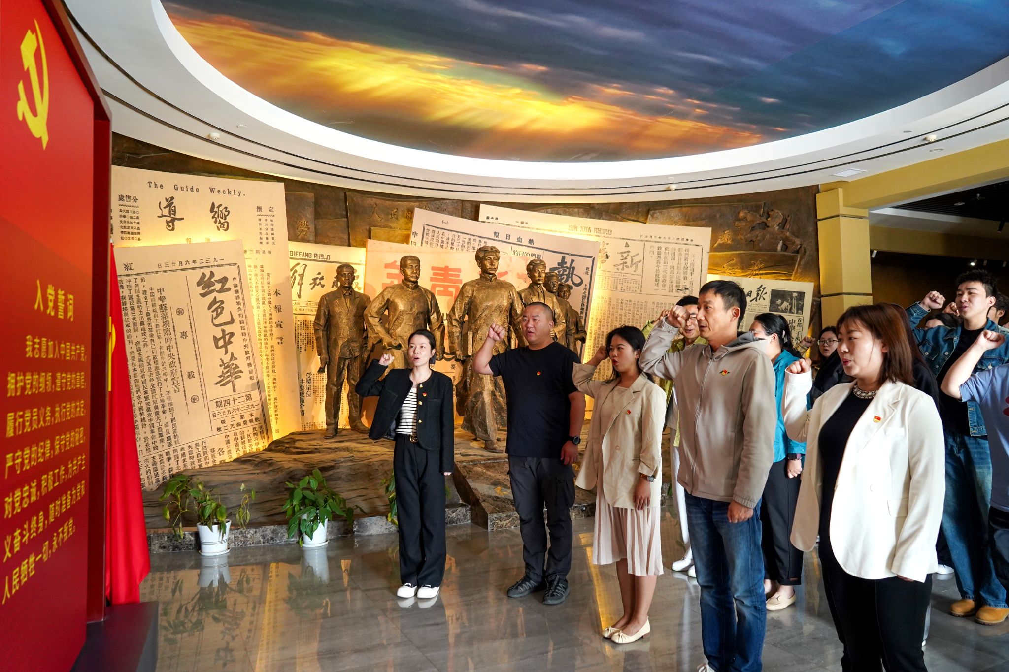 仪式结束后,师生代表在讲解员的带领下参观了《没有共产党就没有新中国——百年报刊展》。展馆内珍贵的革命文献和生动的历史故事,为师生呈现了一堂生动的“行走的思政课”。学生党员代表表示,作为传媒学子,将充分发挥专业优势,用镜头和笔触记录红色记忆,向世界讲好中国故事。