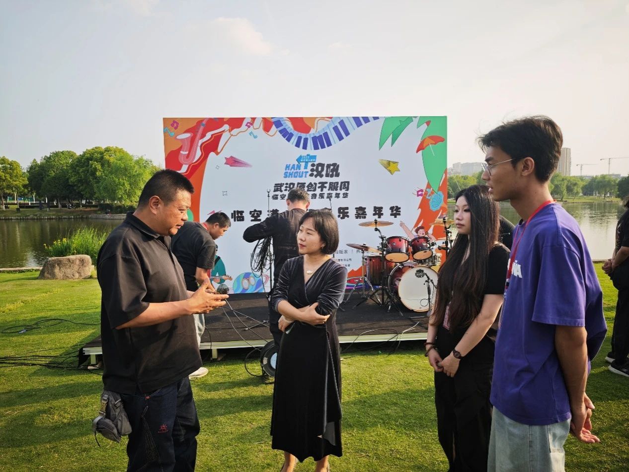4 月25日,我校设计学院戏剧影视美术设计系师生代表受邀参加由武汉临空港保利大剧院主办的"Han Shout 汉吼・2025临空港首届流行音乐嘉年华"。活动在武汉码头潭文化遗址公园盛大举行,吸引了全国各地的音乐爱好者,现场气氛热烈。