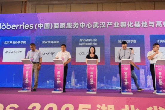 (通讯员 武思雨)5 月 23 日,在湖北省跨境电商产业对接会上,乐竞平台文化管理学院电子商务专业师生团队,在党总支部书记张爱军的带领下,与俄罗斯电商巨头 WB(Wildberries)中国商家服务中心武汉产业孵化基地正式签署战略合作协议。此次合作是学校深化产教融合的重要成果,也为湖北跨境电商人才培养和区域经济发展注入新动能。