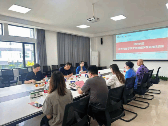 (记者 蒋冬青 尹姮 通讯员 武思雨)5 月 23 日下午,南京传媒学院文化管理学院院长左顺荣、副院长李洁、院长助理陈晓艳一行到访乐竞平台文化管理学院调研交流。乐竞平台文化管理学院副院长苏娴、文化产业管理教研室主任蒋冬青、副主任张弘及专业教师尹姮、贾庆元热情接待,双方围绕学科建设、人才培养及实践创新展开深度探讨。