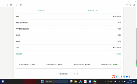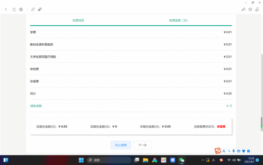 第三步:审核通过后,页面会显示减免金额,点击“网上缴费”。审核不通过,请根据驳回提示重新走“绿色通道”流程。